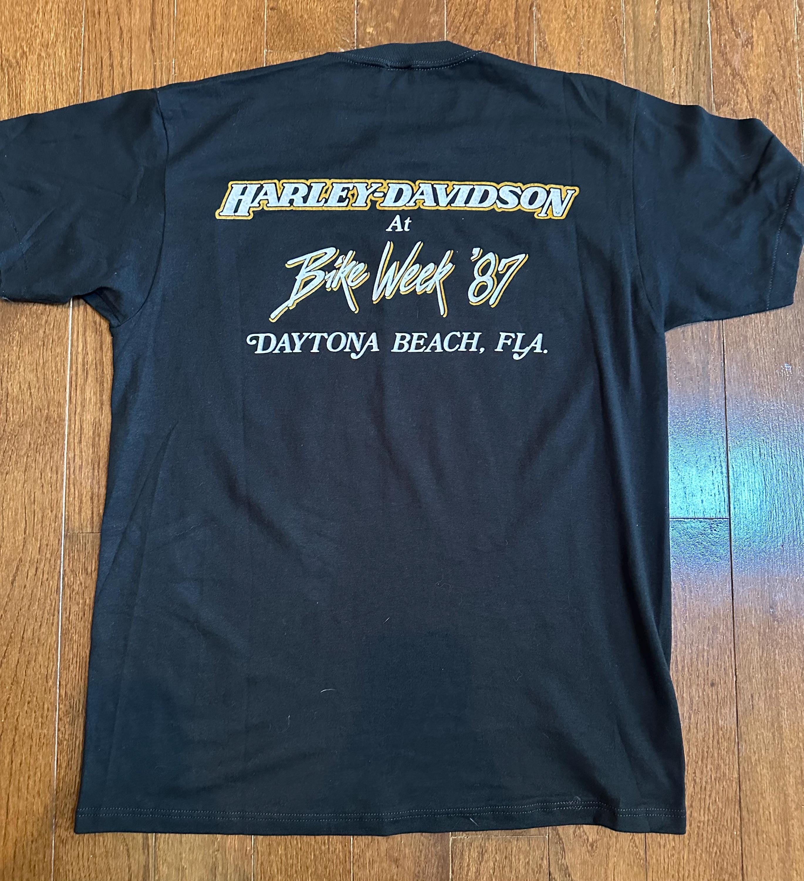 A classic late-80s Harley Bike Week tee—soft, collectible, and straight from Daytona Beach.