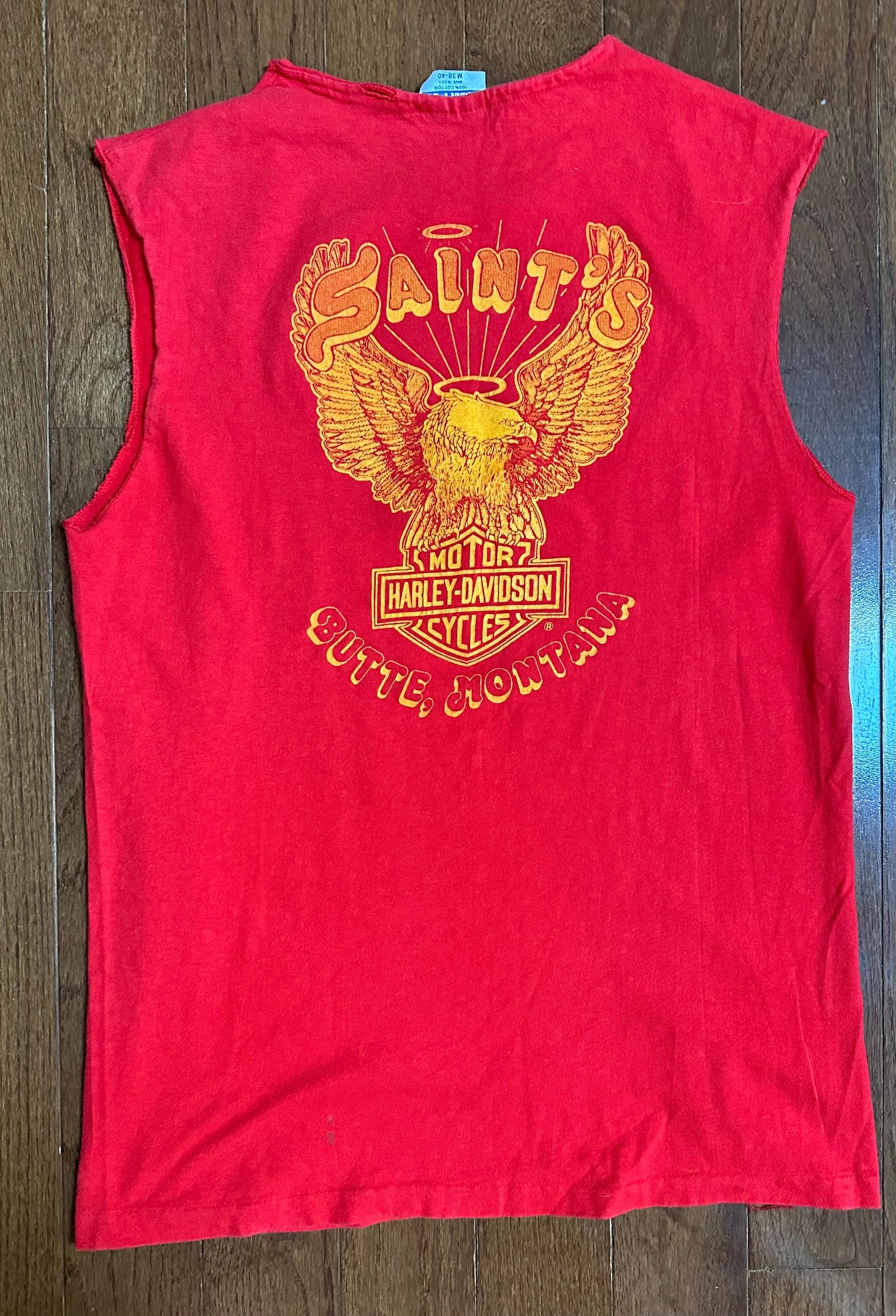 1980s Harley Davidson Saints Cut-Off Tee – Butte, Montana – Single Stitch – M